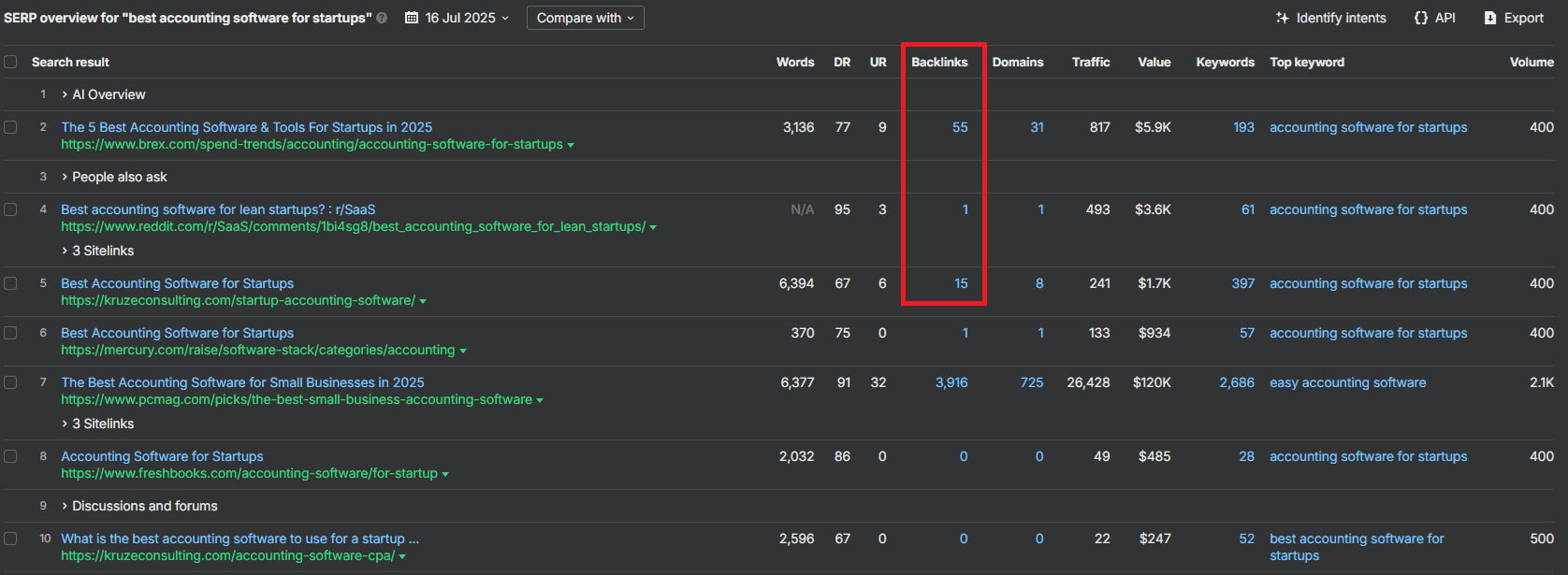Backlink gap analysis tells you precisely how many backlinks you need to compete.
