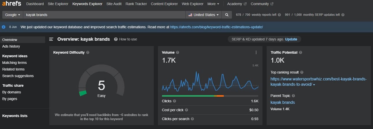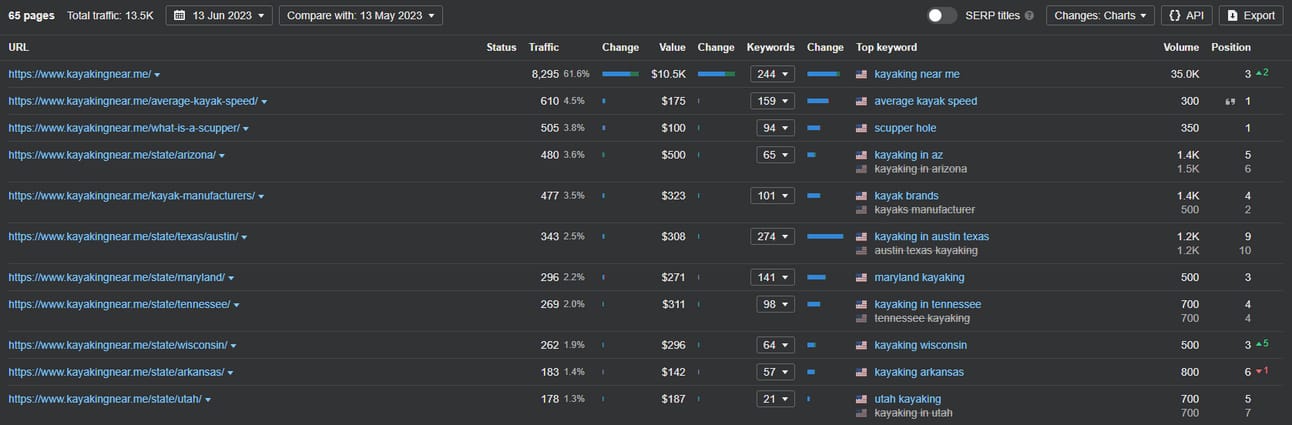 Looks like they rank for a bunch of [state] kayaking keywords and… “kayak brands”