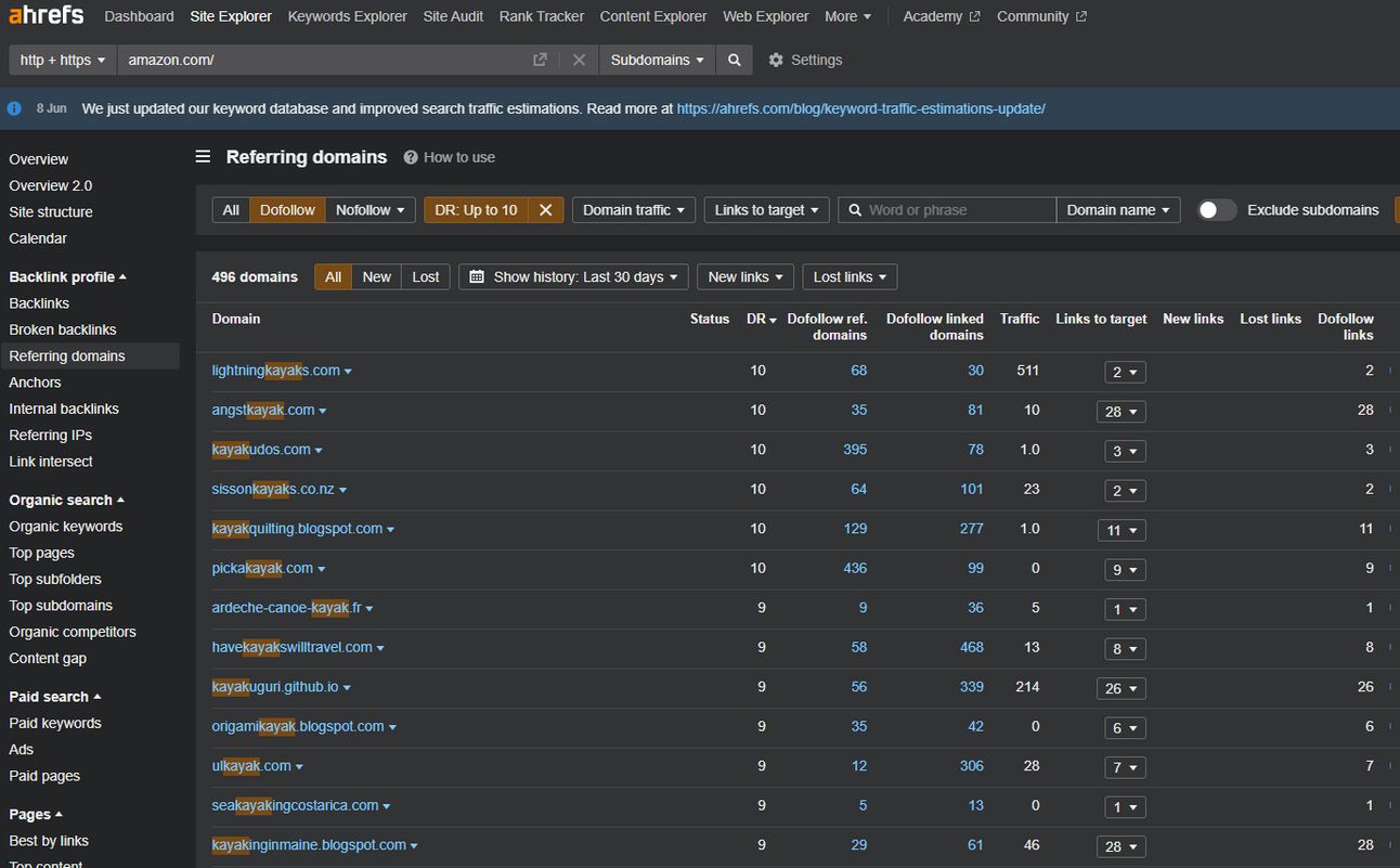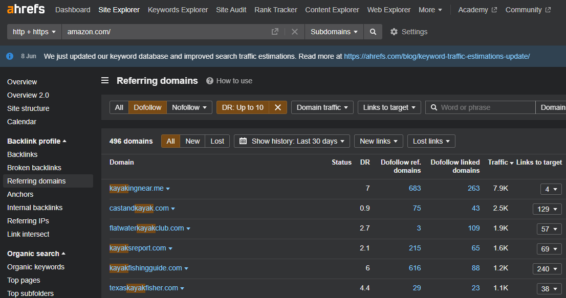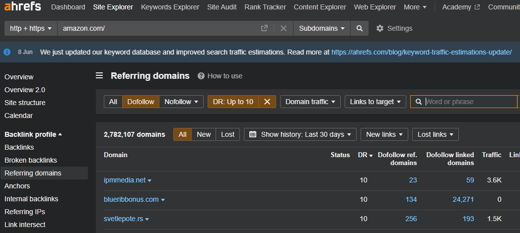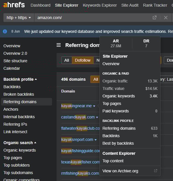 Head to the Site Explorer and let’s take a look at Amazon
