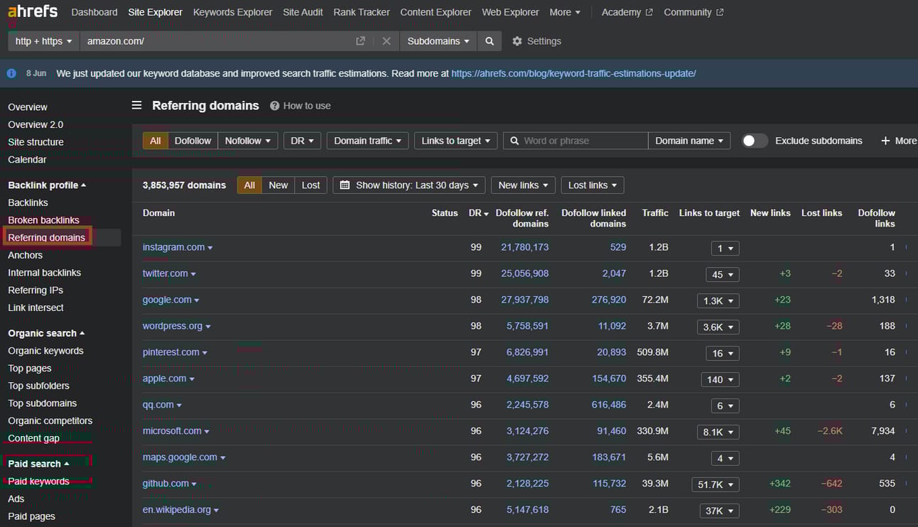 We’re going to start off by heading to the Referring Domains report.